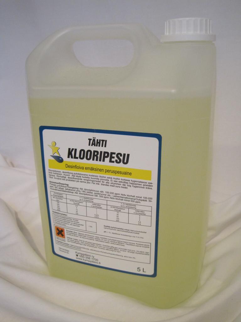 Ominaisuudet: kirkas ja kellertävä kloorinhajuinen neste; desinfioi ja tappaa bakteereita, sieniä, itiöitä, viruksia; poistaa hometta ja hajuja; valkaiseva